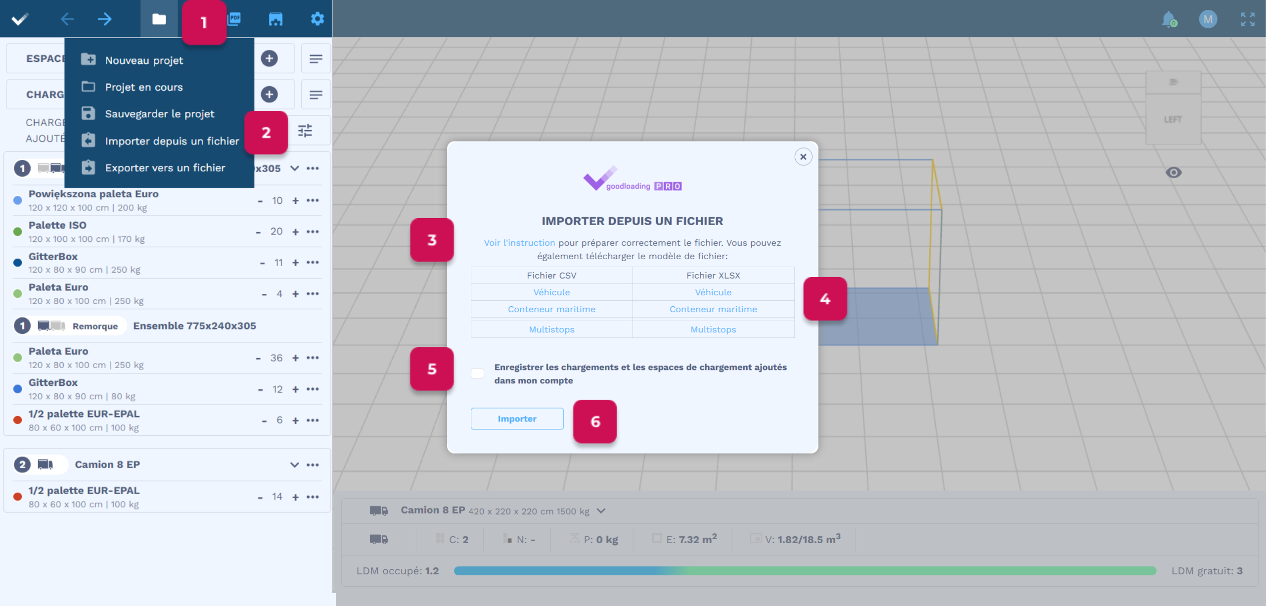 Vous pouvez ajouter des chargements à Goodloading en les important à partir d’un programme comme Excel.